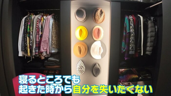 寝室にあるクローゼットの中には、ドンさんがこれまでに手がけたアパレルがずらり!