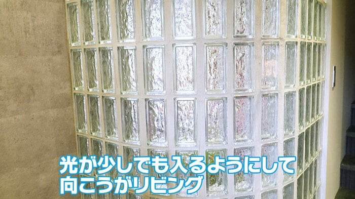 ガラスブロック。光が少しでも入るようにして、向こうがリビングなんですよ。光が入る・入らないで全然雰囲気違うよね。