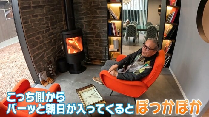 本当に軽井沢って寒いの。こういうところに座って暖炉つけて。 なんかいいよ、ボーッと考えながら、「俺ってどうなんだろう」とかさ(笑)。こっち側からバーッと朝日が入ってくると、ぽっかぽかになるのよ。こんなに朝って気持ちいいのって、気持ちがすごくハイになる。「幸せ~」って思うよね。そんな気持ちって何十年間もなったことないから、そこがやっぱりこの辺のいいところなのかなって思うね。