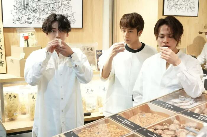 乾物の香りに感動しながら、中丸さんが変化球の「するめ」に興味を示すと、亀梨さんと上田さんは「見たいけどな、むちゃくちゃな中丸も」「メチャ丸見たいよ」と「鶏節」を合わせるよう薦める一幕も。