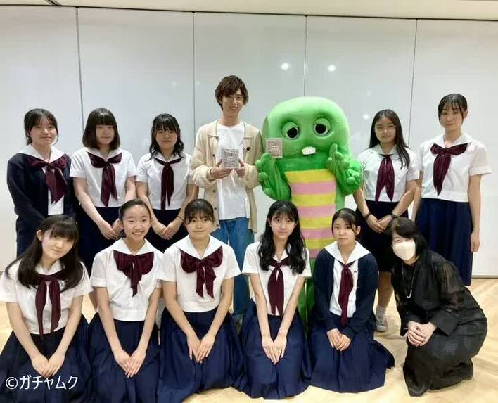 今回、阿部さんとガチャピンはこの支援活動を取材して、実際に活動に参加。そして、新商品の開発にも取り組み、生徒たちと試飲会を開催します。