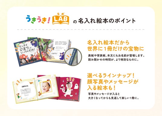 ECサイト『うきうき!LAB』で展開する名入れ・写真入り絵本シリーズは、その第一歩です。
