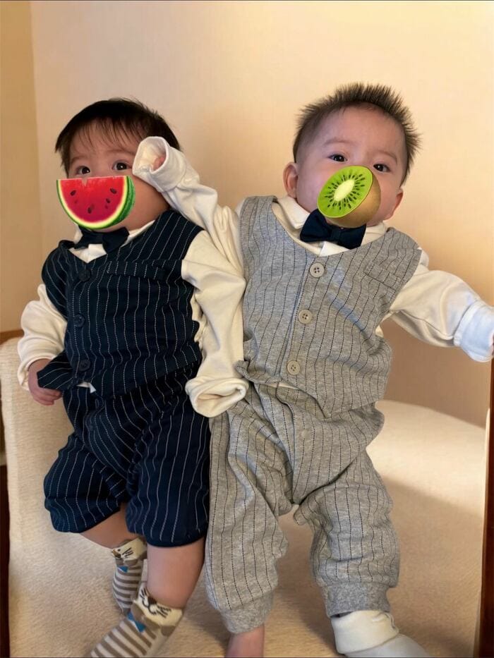 SNSからは「ご入園おめでとうございます!」「色んなことを学んで成長してほしいですね!」「本当に何着ても似合う双子ちゃんだなぁ~」「蝶ネクタイロンパかわいすぎ」など注目の声が寄せられています。