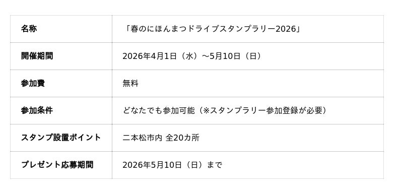 参加無料「にほんまつドライブスタンプラリー2026」開催