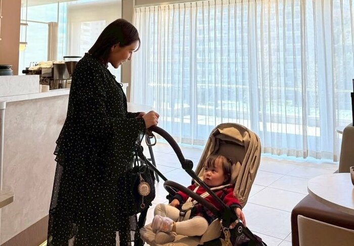 「最近はお腹が大きくて抱っこが大変なのでどこいくにしてもベビーカー移動」と、大変な妊娠生活の中でも、にこりちゃんとのお出かけを楽しんでいることを明かしました。