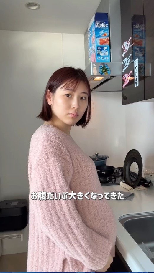 妊娠8ヶ月を迎え、そのお腹はずいぶんとふっくらとしています。