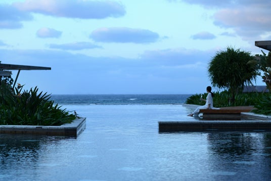 海を臨むインフィニティプールで寛ぐひととき