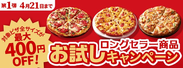 対象は、長年多くのお客様に親しまれてきた定番ピザ。第1弾は4月1日(水)から4月21日(火)までの期間限定で実施いたします。