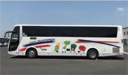 現在、車体に野菜のキャラクターが描かれたバスは約50台あります。主に四国方面と大阪・神戸の間を運行しているほか、伊丹空港および関西国際空港と阪神間の各拠点を結ぶ空港リムジンバスとしても運行しています。
