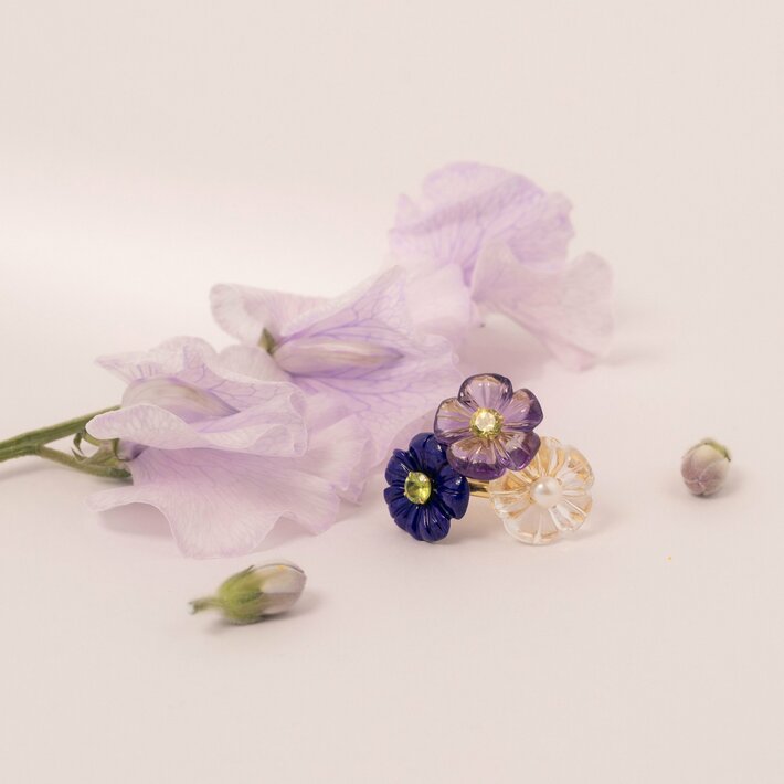 期間中は、春の訪れを祝うカラフルな花々に彩られたジュエリーを展開。オパールやクォーツなどの天然石でみずみずしい花々を描いた代表作“Gem Flower Collection”をはじめ、幼い頃に憧れたおもちゃの宝石をダイヤモンドやサファイアで表現した“Candy Collection”など、心ときめくラインアップを豊富に取り揃えます。