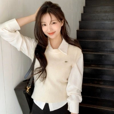【5位】アットランス ボタン シャツ/ショップ名:Attrangs JAPAN抜け感のある7分袖と、肌当たりのよいピーチ起毛のコットンシャツ。同系色のリブニットベスト付きで、コーデの幅が広がるセットアイテム。