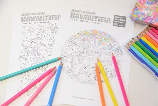 本展にも展示されている「Colorful Rebellion -More is More-」や作品の中に登場するぬいぐるみたちなど、小さなお子さまから大人まで楽しめるデザインをご用意。増田セバスチャンセレクトのスペシャルエディション色えんぴつセット「20/500COLORED PENCILS」のビビットな色味を含む色えんぴつを使って、自分のカワイイを創造しましょう。期間:2026年4月4日(土)~8月30日(日)
