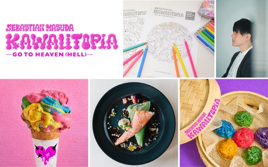 株式会社ムーミン物語(代表取締役社長:望月潔)が運営する北欧ライフスタイル体験施設「メッツァビレッジ」(埼玉県飯能市)内の現代美術館「HYPER MUSEUM HANNO」(ハイパーミュージアム飯能、館長:後藤繁雄)で開催中の増田セバスチャン「KAWAIITOPIA -GO TO HEAVEN(HELL)-」 (カワイイトピア ゴー トゥ ヘヴン(ヘル))。展覧会とあわせて満喫できるコラボメニューやワーク ショップが4月4日(土)からスタートします。また展示空間で流れるユートピア感溢れる楽曲は、音楽プロデューサーとして第一線で活躍するRAM RIDER(ラムライダー)が制作しました。