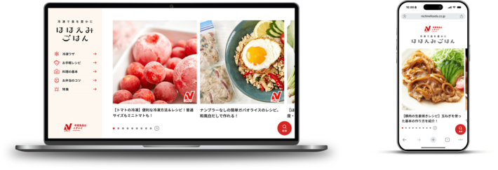 「ほほえみごはん(R)」は、「冷凍」や「冷凍食品」を上手に活用することで、料理をもっと賢く、簡単に、そしておいしく楽しんでいただくための食メディアです。本リニューアルでは、ユーザーの情報ニーズや閲覧行動の変化に対応し、情報設計およびデザインを刷新しました。あわせて、スマートフォンを中心とした閲覧環境への最適化やアクセシビリティ対応を強化し、より多くのユーザーにとって快適で使いやすいメディアへと進化しました。