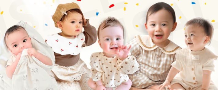 お子さまの成長に寄り添うベビー服をはじめ、肌に優しいおくるみ、日々の暮らしに欠かせないスタイやお食事エプロンなど。