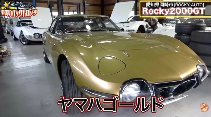 中には、ゴールドに輝く車体も。このカラーは“ヤマハゴールド”と呼ばれ、「トヨタ2000GT」の開発に関わったヤマハが特注した試作車の色だといいます。あまりの光景に、テリーさんも「頭クラクラしてきちゃう」と驚きを隠せません。