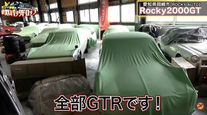 工場内には、緑色のカバーがかけられた車がずらりと並び、すべてがGT-Rだといいます。