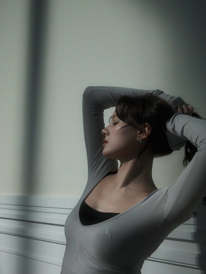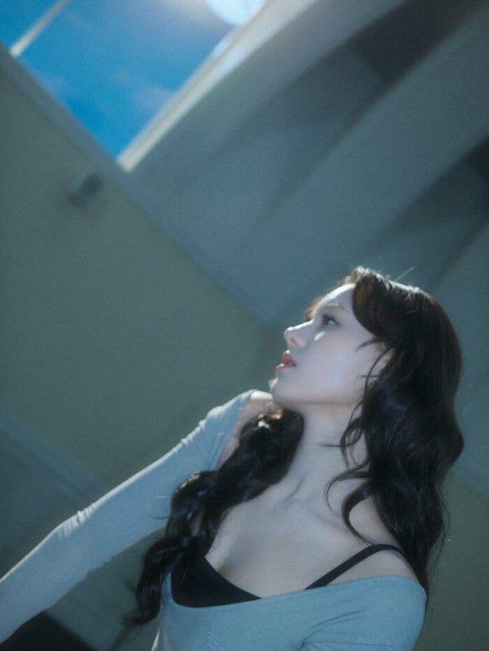 窓から差し込む光を浴びながら、物憂げでアンニュイな表情をしたショットは、柔らかな光を受けて透き通るように輝く肌が印象的で、清らかではかない余韻を残すような存在感があります。