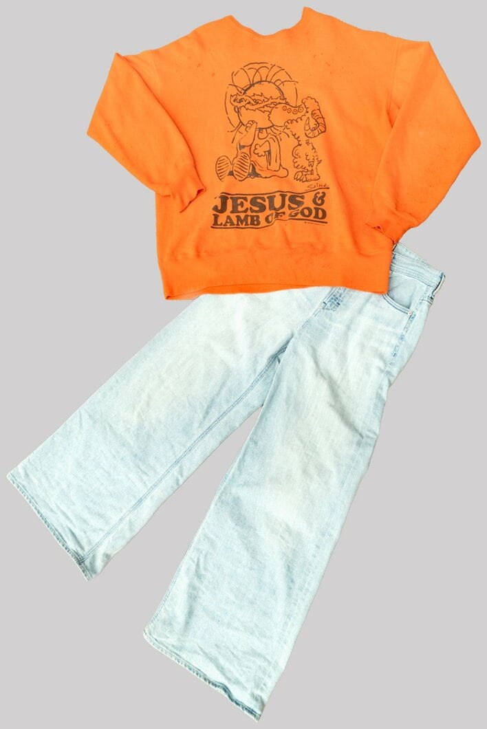 <こだわりの一着>「Saint Mxxxxxx(セントマイケル)」のスウェットと、「YANUK(ヤヌーク)」のデニムパンツ