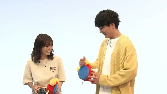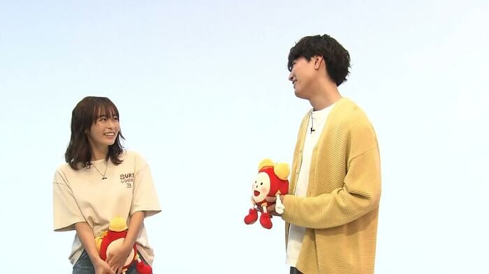 森さんが、「なんですか?」と気づくと、間宮さんは「(森さんが)めざましくんのぬいぐるみを、こんな風に(回転させながら)いじっていて、それがすごく面白くて」と、ジェスチャーを交えながら指摘。