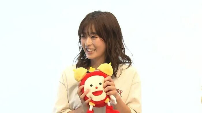 森さんは、めざましくんのぬいぐるみをなでながら、「ごめんね…。私、(めざましくんが)好きです。かわいくて」と笑いました。