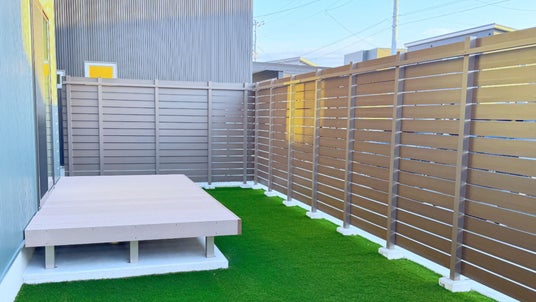 アウトドアリビングを設け、外構などもイメージしやすい。プライバシーに考慮し、フェンスも設置。