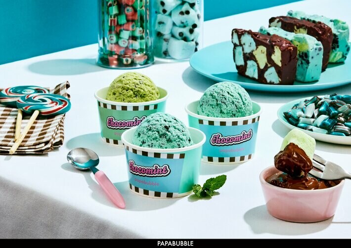 レトロアメリカンなアイスショップを思わせるポップなデザインのキャンディや、ミントの爽快感を楽しめるチョコレート、遊び心あふれるユニークなスイーツなど、チョコミント好きにはたまらないラインナップが揃います。見た目の楽しさと味わいの奥行きを兼ね備えた、PAPABUBBLEならではのチョコミントシリーズです。