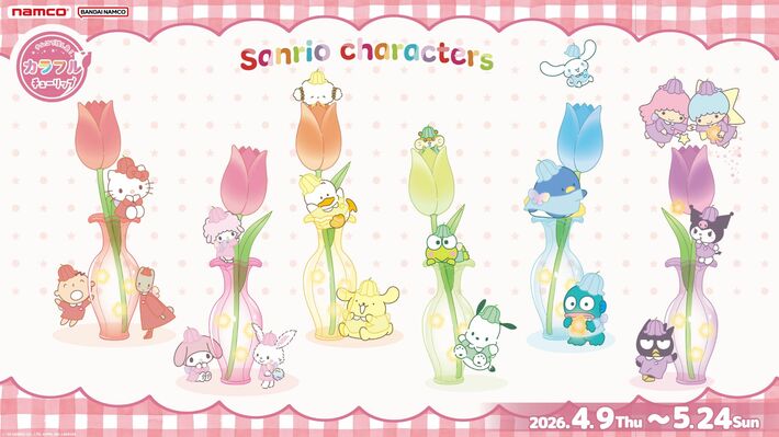 株式会社バンダイナムコエクスペリエンスは、株式会社サンリオが開催する年に一度の人気投票イベント「2026年サンリオキャラクター大賞」と連動したキャンペーン『ナムコで推し色!~カラフルチューリップ~』を、2026年4月9日(木)から5月24日(日)まで、全国のアミューズメント施設「ナムコ」および「ナムコオンラインクレーン」(以下ナムクレ)で開催します。