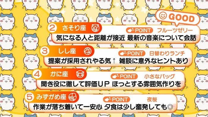 『めざましテレビ』で放送中の「ちいかわ占い」 テレビ放送がない日はお休みで、月~土:朝7時以降に更新予定です。