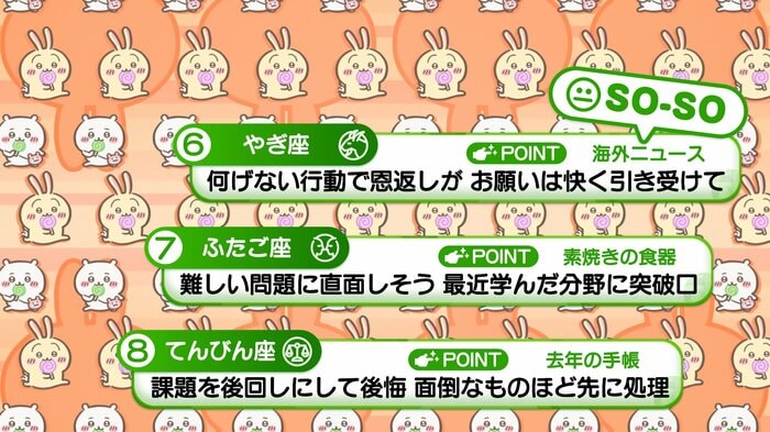 『めざましテレビ』で放送中の「ちいかわ占い」 テレビ放送がない日はお休みで、月~土:朝7時以降に更新予定です。