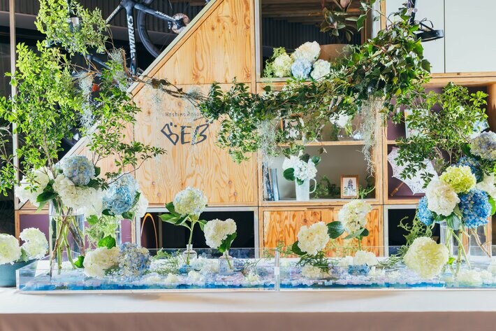 この度、当園のフローリスト・間中奈津美が、パブリックスペース「TAMARIBA」の空間演出を監修。さらに、いばらきフラワーパーク園内では、6月1日(月)~29日(月)の期間、BEB5土浦 by 星野リゾートとのコラボレーション企画『雫にきらめく、紫陽花の季節』を開催します。