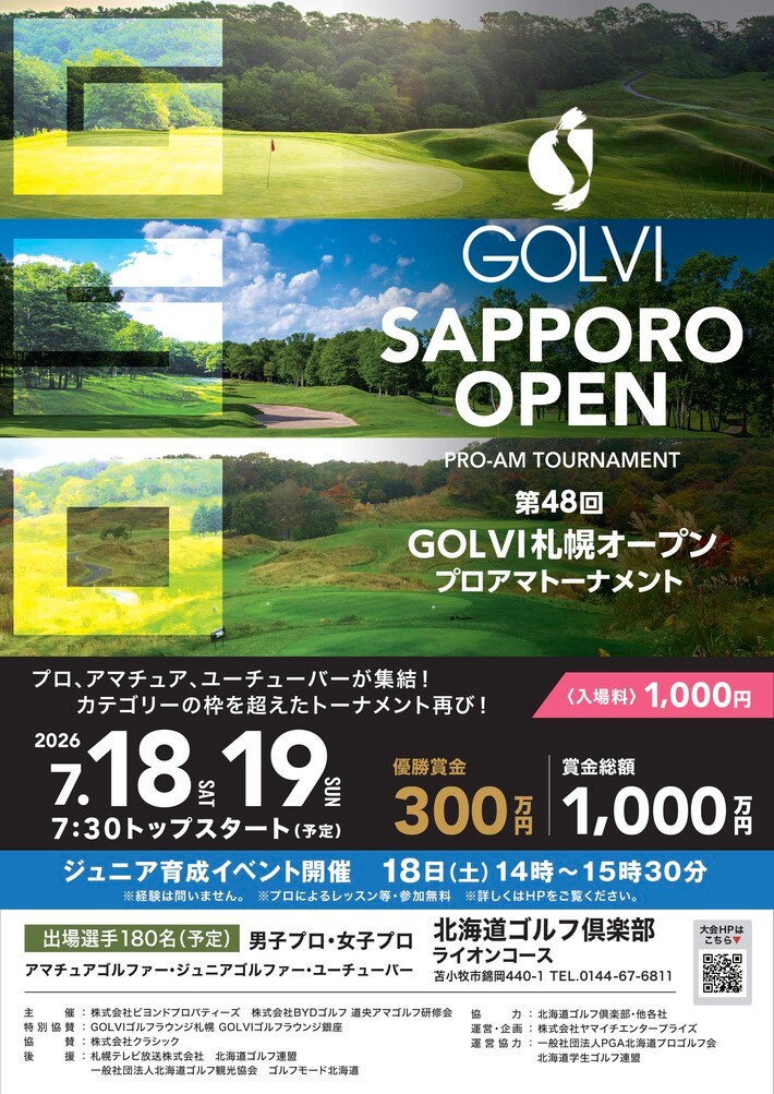 株式会社ビヨンドプロパティーズと株式会社クラシックは、北海道ゴルフ倶楽部ライオンコースにおいて、2026年7月18日(土)から19日(日)までの2日間、「第48回GOLVI札幌オープンプロアマトーナメント」を開催することを決定いたしました。