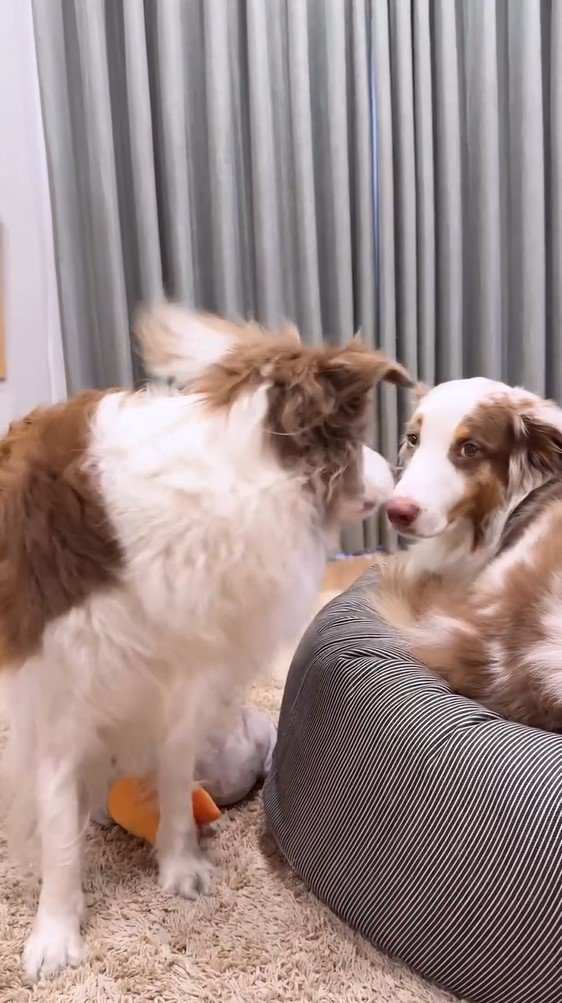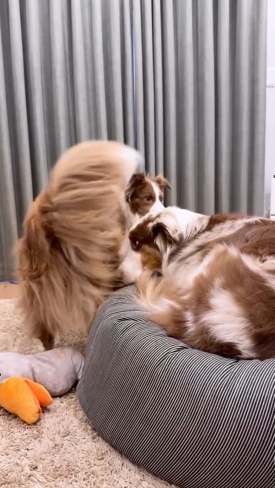 今回反響を呼んだのは「姉の猛アタックには負けてしまうガルチェロです」とつづり、投稿された2匹のワンコのほっこり動画です。