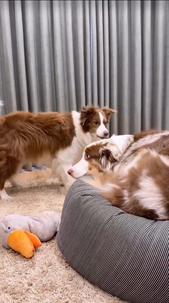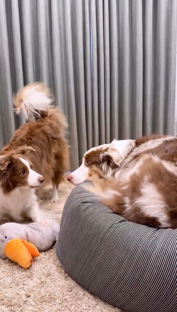 SNSからは「誘い方可愛すぎ」「こんなに表情豊かなわんちゃんいるんですね!」「リーちゃんの粘り勝ち!」「お尻アタックされたい♡」など注目の声が寄せられています。