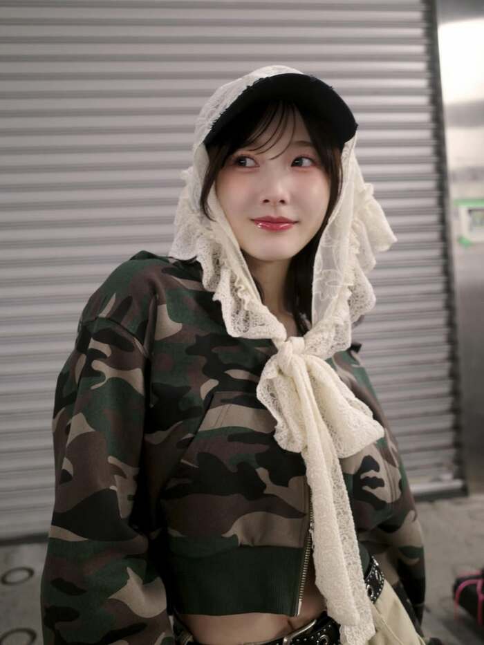さらに、迷彩柄のトップスを身につけキャップをかぶり、レースのスカーフを頭に巻いた甘辛ミックスなコーデのショットでは、ほっそりとしたおなかがチラリ!本田さんのスタイルの良さがうかがえますね。