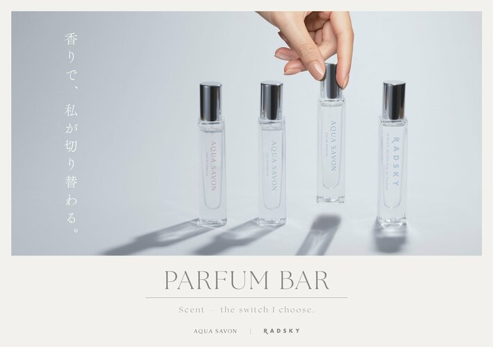 「PARFUM BAR」は、アクア シャボンやエンジェルハート、ラッドスカイなどの複数のフレグランスブランドを横断して展開する、ミニサイズのフレグランスシリーズです。