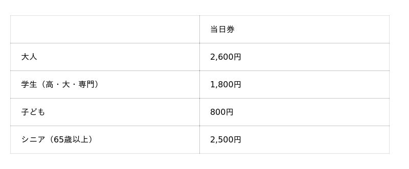 当日券 :3月27日(金) 00:00 ~ 6月28日(日)16:30まで