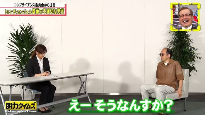 今回の仕掛けを知らされ、ヒコロヒーさんからは「(コンプラ委員会から見た結果は)合格です!」と言われた斎藤さんは、「不合格だよ!自分的には。えー、やだー、もうー、えー」とガックリ。