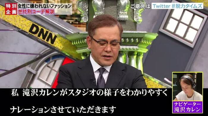 30代おすすめファッションでは、斎藤さんの登場~熱唱までのくだりは、これまで同様の流れとなったものの、そこに、滝沢カレンさんが即興でナレーションをあて、スタジオでのやりとりがかき消されるような展開に。