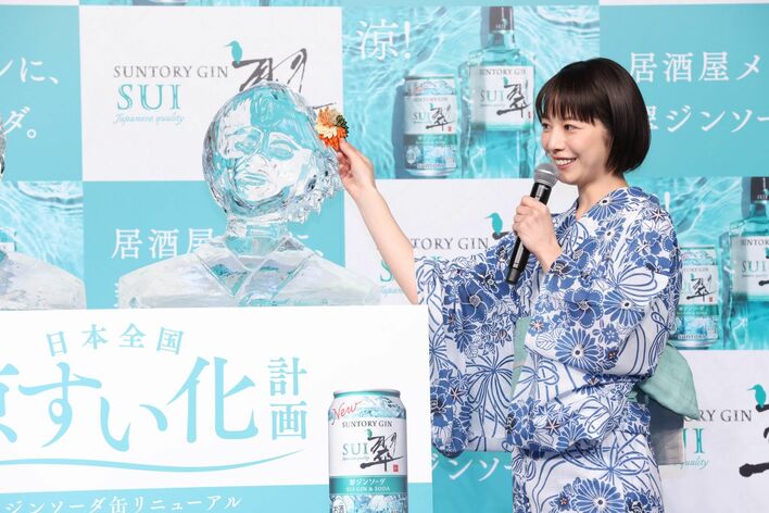 7月5日、夏帆さんと角田晃広さん(東京03)がアルコール飲料の新CM発表会に登場しました。