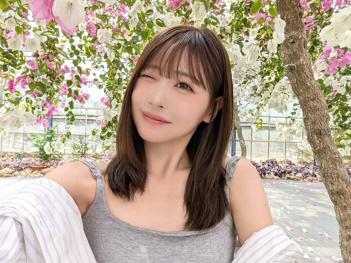 公開されたのは、白やピンクの花が咲く木の木陰での自撮りショット。グレーのタンクトップにシャツを肩まで落としたラフなスタイルで、ウインクをしたキュートな表情を披露しています。しかし注目を集めたのは、その頬の状態。親知らずを抜いた翌日とは思えないほど腫れが見られず、思わず忘れてしまうほど普段通りの美しさです。