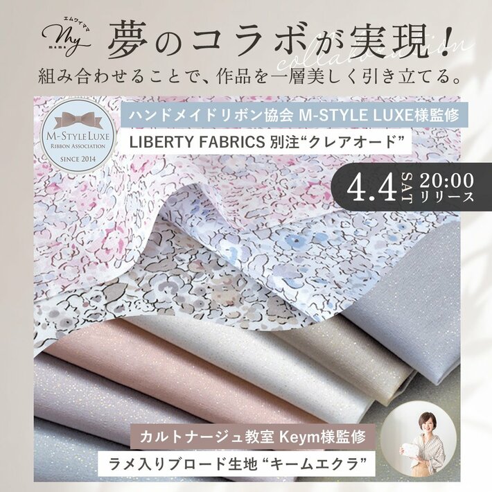 株式会社MY mamaは、リボン・カルトナージュ・手芸販売という異なる分野で活動する3者が協業し、オリジナル生地およびコラボレーションキットの企画プロジェクトを実現しました。