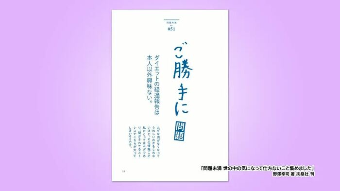 7月7日(金)の放送は、コピーライターの野澤幸司さんの著書「問題未満」のエピソードをもとに、「問題…まではいかないけど、モヤモヤすること」というテーマで、MCの設楽統さんと三上真奈フジテレビアナウンサー、千秋さん、カンニング竹山さん、大神いずみさん、「婦人公論」元編集長の三木哲男さんが討論しました。