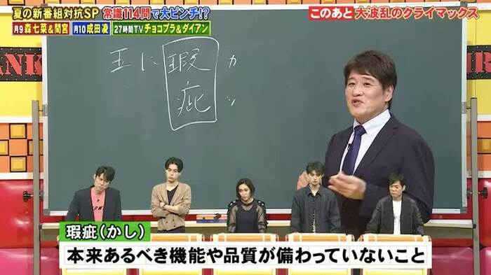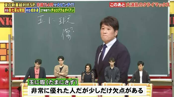 7月10日の『ネプリーグSP 森七菜&間宮祥太朗vs成田凌!夏ドラマ人気俳優が超常識Q対決』は、森七菜さんら「月9『真夏のシンデレラ』チーム」と成田凌さんら「月10『転職の魔王様』チーム」、ダイアンら「FNS27時間テレビチーム」が三つ巴戦を繰り広げました。