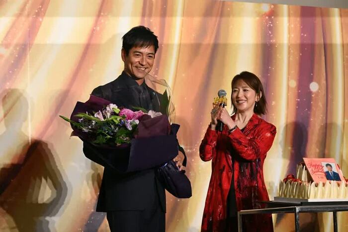 会見の最後には、本日7月10日に56歳の誕生日を迎えた沢村さんをサプライズでお祝いする一幕も。若村さんの「今日は沢村一樹さんの誕生日です!」という言葉を合図に、拍手の中、花束とケーキが登場。