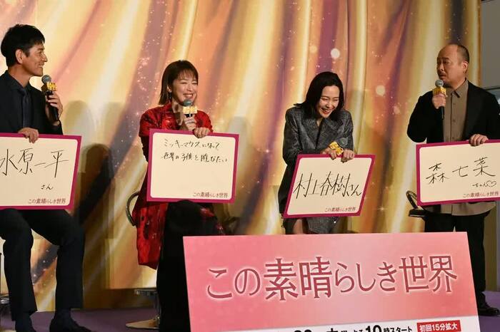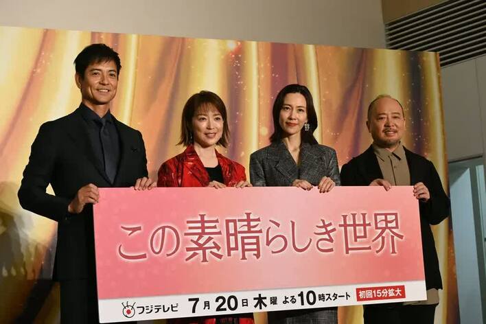 7月10日、木曜劇場『この素晴らしき世界』の制作発表会見が行われ、主演の若村麻由美さん、共演の木村佳乃さん、沢村一樹さん、マキタスポーツさんが出席しました。