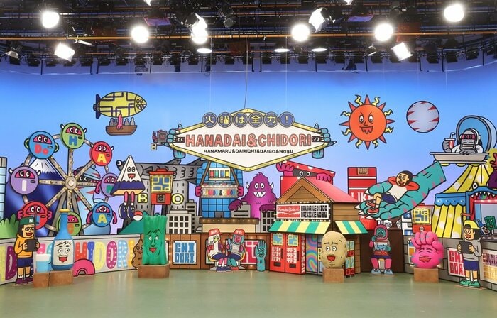 ポスターの背景や番組のセットにあしらわれている、華大千鳥のキャラクターは、後輩芸人のネゴシックスさんがデザインしたイラスト。独特の「脱力感」漂うキャラたちのビビッドで「中毒性」のある配色が特徴的です。