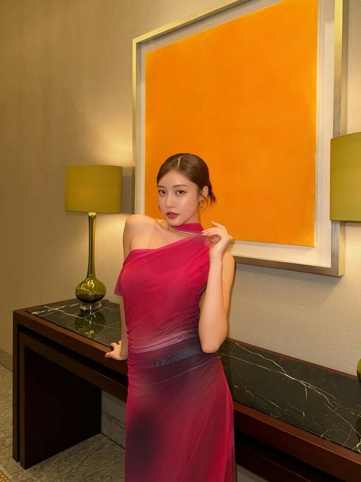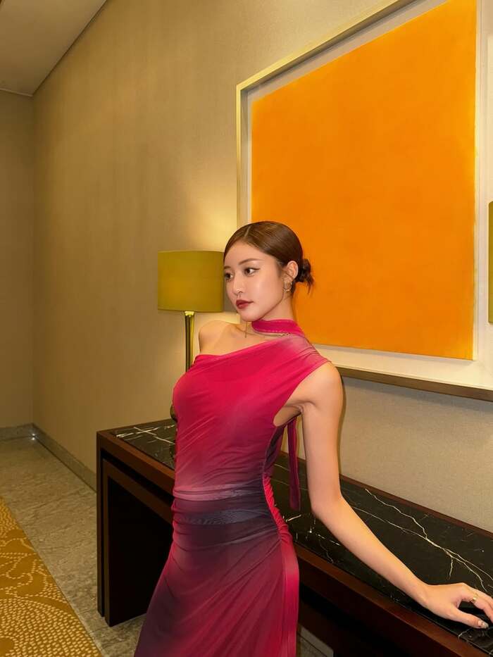 今回の投稿で、鮮やかな赤のワンショルダードレスに身を包んだショットを公開した王林さん。デコルテから肩にかけて大胆に開いたデザインが、美しい肩のラインを引き立てています。