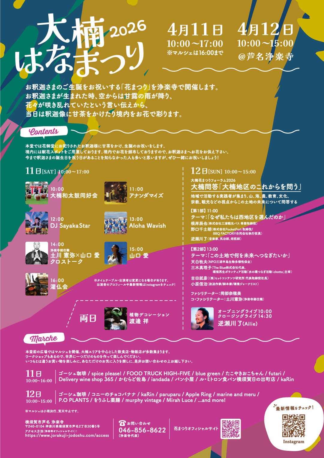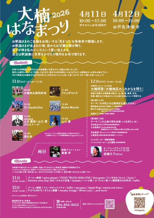 食・もの・音・対話が集う、境内マルシェ&花まつりフォーラム2026年4月11日(土)10:00~17:00 / 4月12日(日)10:00~15:00 @芦名浄楽寺