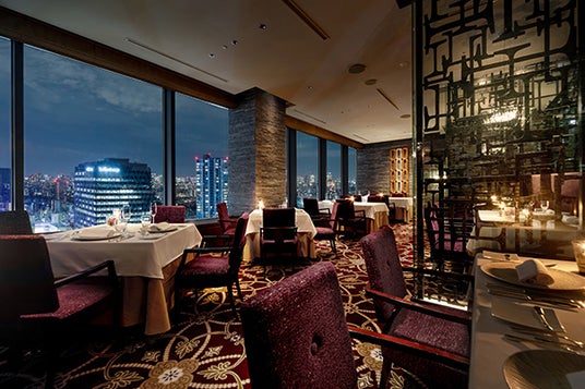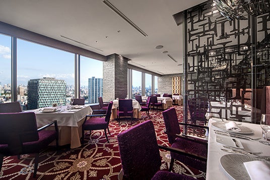本格フランス料理をベースに素材の風味を引き立てるイタリア料理も加わり、魅力ある伊仏料理を提供します。“ART&RICH”をデザインコンセプトとし、気品のあるボルドーカラーを基調としたフォーマルで華やかな店内。眺望をお楽しみいただける窓側席「エクラ」、プライベート感のあるソファー席「セレニテ」、お祝いごとや接待などの大切な方を招いた会食に最適な個室「SALA」からなるお席は、すべてゆとりをもって配席されており、都心の眺望をご覧になりながら上質なおもてなしと共に贅沢なひとときをお楽しみいただけます。